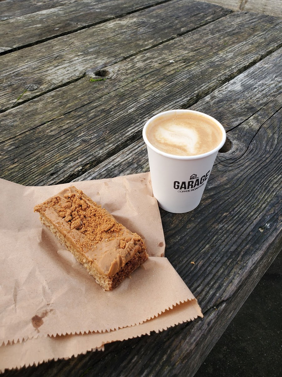 The menu at Garage Coffee Roasters is carefully curated, offering an impressive selection of coffee drinks that cater to a variety of tastes. For those who appreciate a smooth, creamy beverage, the Flat White with Oat Milk is a must-try. It's a perfect balance of velvety oat milk and robust coffee, providing a satisfying and warming experience. If you're in the mood for something a bit sweeter, the Oat Milk Latte and Spéculoos Flapjack offers a delightful pairing. The slightly spiced flavor of the flapjack complements the smooth oat milk latte, making it a popular choice among regulars.